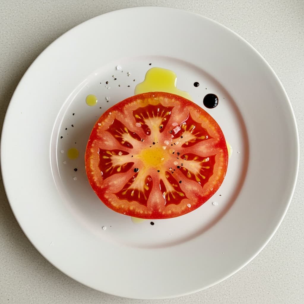 상큼한 생토마토 한 개에 올리브 오일 1큰술을 뿌려 간단하게!