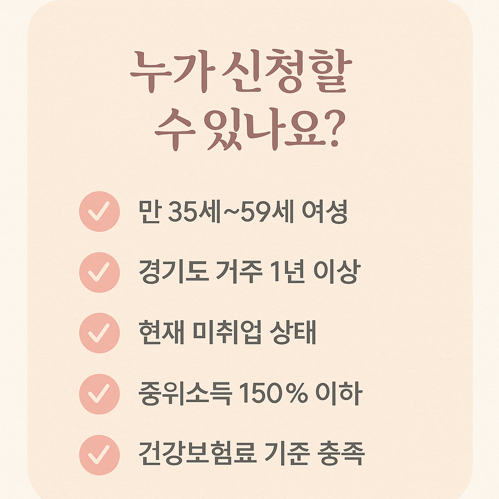 2025년 기준, 공고일인 4월 25일을 기준으로 만 35세 이상 59세 이하인 여성이 해당된다.