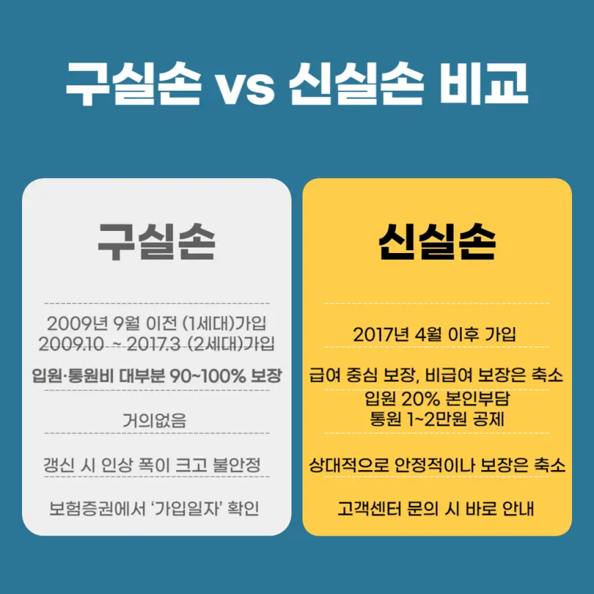 📌 구실손 vs 신실손 비교표