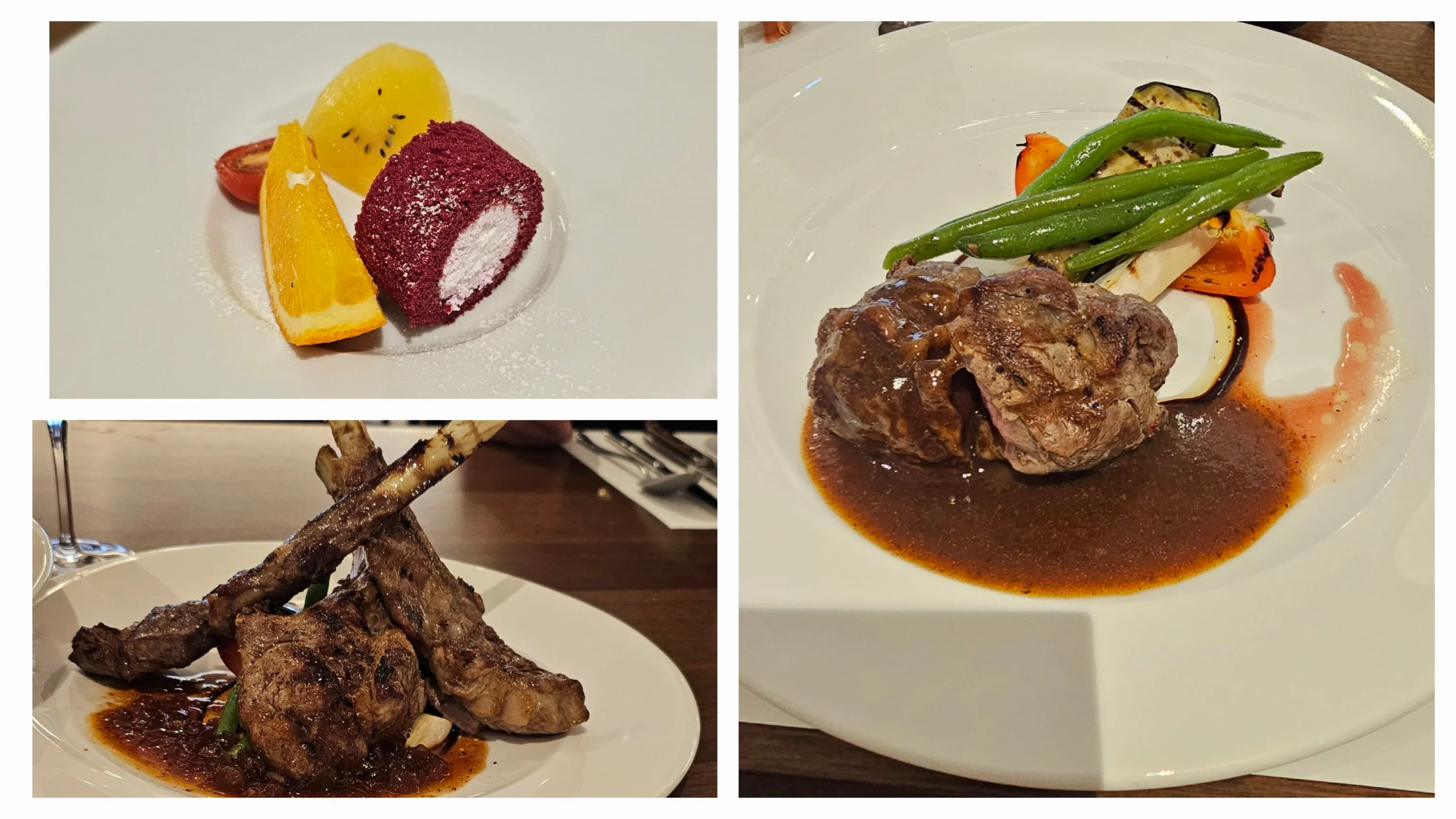 8월이니 게철이 아니어서 굳이 나가서 수입게를 비싼 돈 주고 먹을 필요가 없다는 생각에 숙소 내 식당을 이용했어요. 스테이크, 샐러드, 피자, 파스타 같은 음식을 먹을 수 있고 같은 곳에서 아침 조식도 이용을 했어요. 음식맛도 좋고 서비스도 좋았어요. 꼭 게를 드셔야 하는 게 아니라면 좋은 선택이라는 생각이 듭니다.